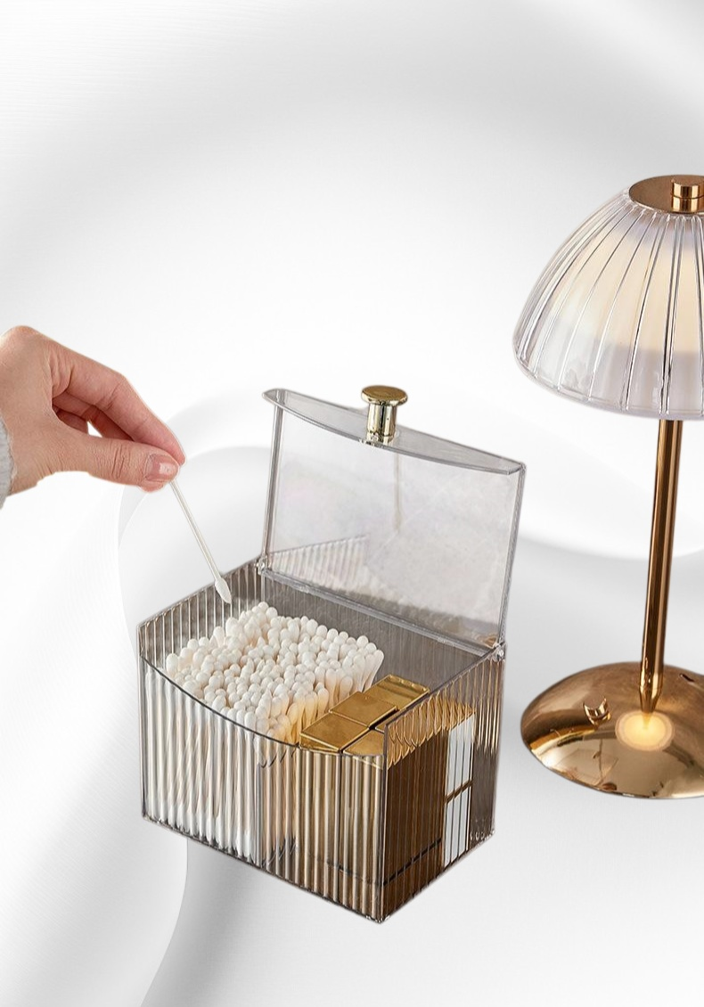 Keeps cotton swabs, cotton pads, and beauty sponges organized. Clear design for easy visibility. Compact size fits desktops and vanities. Durable material ensures long-lasting use. Easy to clean and refill.